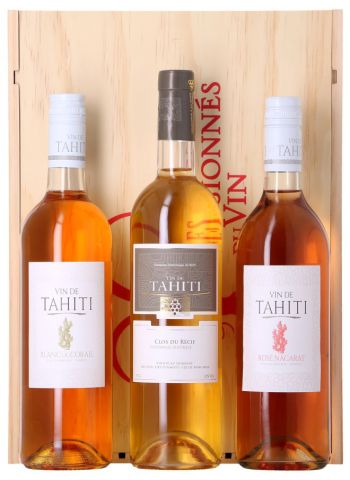 Coffret Bois 3 Vins de Tahiti : Les 2 Blancs secs + 1 Rosé